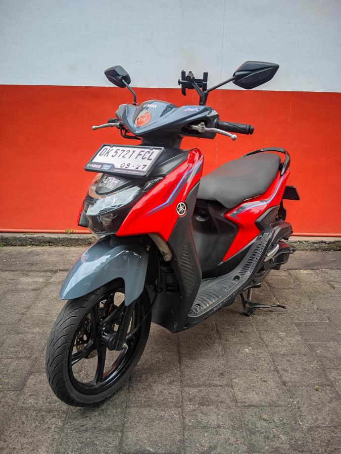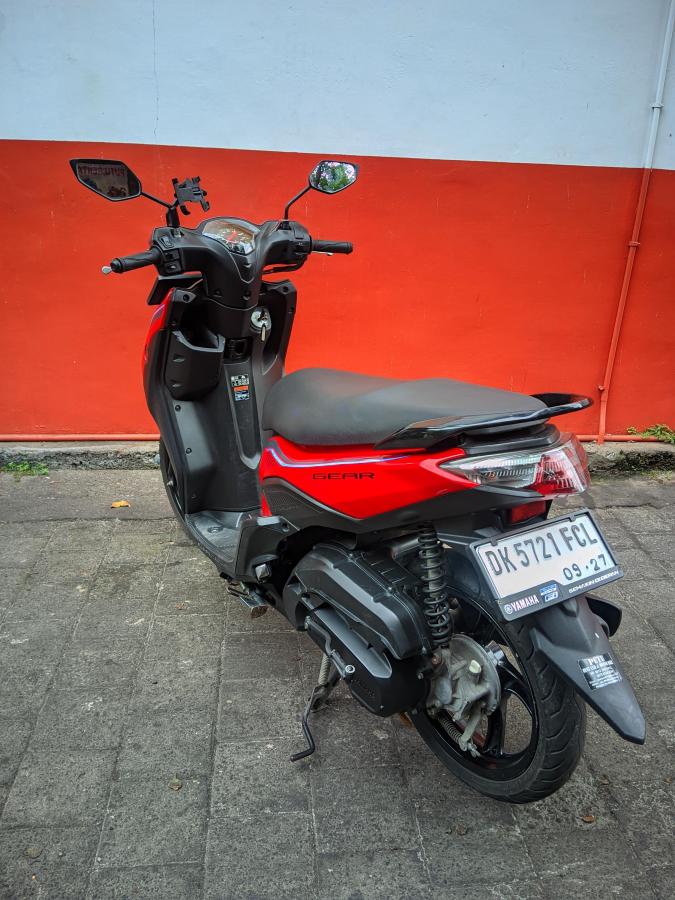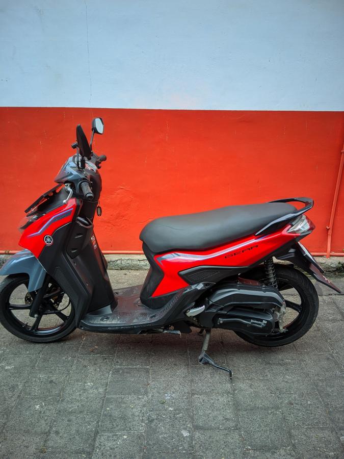 • Experience an exhilarating ride with the brand new 2022 Yamaha Gear. This 125cc motorbike in a vivid red color is economical and nimble. It comes with an added phone holder and automatic gear shift for smooth, convenient trips. Rent it now!